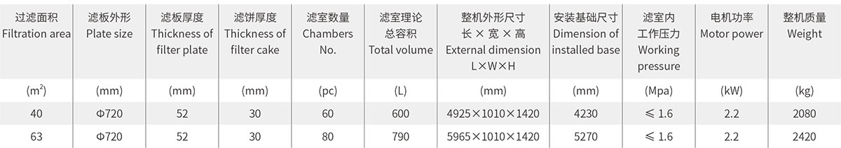 D720、D820、D1100型壓濾機,過濾壓力高(2.0——3.0mpa), 效率高,含水率低,適用于各行各業物料脫水處理。現已應用于市政、礦山、紙業等多個大型固廢脫水處理行業。設備使用簡單,操作、維護方便,是理想的固液分離設備。專利技術(專利類型:發明、專利號:CN207980547U),圓形濾板,濾板面結構自主知識產權設計,使用壽命長,密封性強,不噴漿,耐高壓,過濾效果好,濾餅含固高。