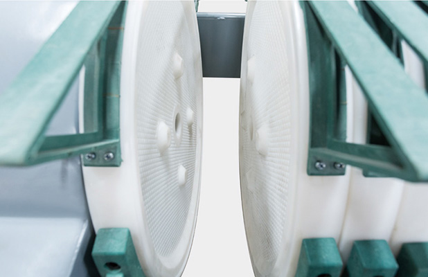 ③濾板采用進口高分子PE專利技術高壓壓制成型,確保每塊濾板使用壽命更長;