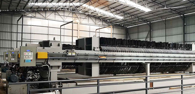 高干度,高產(chǎn)能,廢渣可壓榨至含水率30%以下,低至15%,比普通廂式壓濾機低10個點,比帶式壓濾機低15個點,配置我司兩臺XMYD1500-130PC-400廂式高壓壓濾機可滿足1000m3/d生產(chǎn)線的廢渣脫水需求。