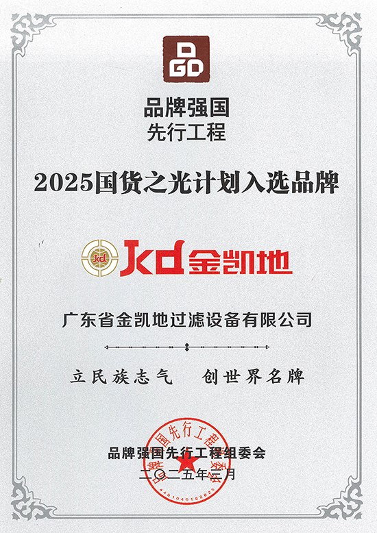 2025年3月20-22日,以 “‘三個轉變’的先行實踐” 為主題的 2025品牌強國先行工程嘉年華在肇慶盛大開幕。廣東省金凱地過濾設備有限公司(以下簡稱 “金凱地”)憑借在過濾技術研發、產品質量把控、行業影響力等多方面的突出成績,成功入選 2025 “國貨之光計劃”,入圍 “品牌強國先行工程”。這一榮譽不僅彰顯了金凱地在過濾設備領域的深厚積淀,更肯定了其在推動行業發展、塑造民族品牌道路上的積極探索與不懈努力。